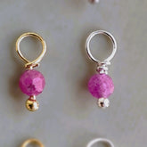 Bedel of hangertje July, met de geboortesteen van de maand juli: een robijn edelsteentje. De steen is roze-rood, en glanst zacht omdat de steen facet is geslepen. Je ontvangt een certificaat met de betekenis erbij.