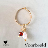 STIJL, zie 3e foto, kies zelf de opties: met extra groot oogje van 5 mm, en extra parel-bedel.