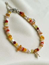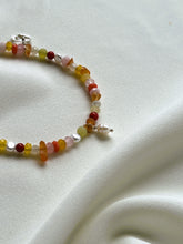 - De armband Adventure, in de kleuren rood, roze, geel, oranje, met de edelstenen parel, koraal, agaat, carneool, rozekwarts