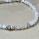 Enkelbandje White Cat, met labradoriet en wit kattenoog