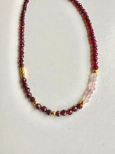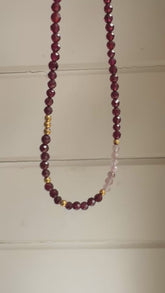 Ketting Kracht & Moed, een fijn minimalistisch kettinkje met geslepen edelsteentjes in warme kleuren in krachtig donkerrood en lichtroze. Granaat en rozekwarts, 2 kristallen die zo geliefd zijn, en nu samen in dit sieraad 💕 Het kettinkje wordt verpakt in een bewaaretui, dat je makkelijk mee kunt nemen, en je ketting goed beschermt. De edelsteentjes granaat en rozekwarts zijn facet geslepen en een beetje onregelmatig, dat geeft een speels sparkle effect.