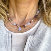 Kies je een hangertje? Dan krijg je lila-lichtblauwe chalcedoon. Wil je een andere edelsteen? Schrijf het bij Notities (tijdens het bestelproces).