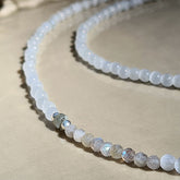 - Het delicate kettinkje White Cat met witte kattenoog en labradoriet edelsteentjes