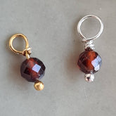 Bedel of hangertje January, met de geboortesteen van de maand januari: een helder granaat edelsteentje. De steen is donkerrood, en glanst fijn omdat de steen facet is geslepen. Je ontvangt een certificaat met de betekenis erbij.