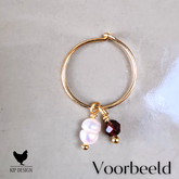 OPTIES, klik op foto 3: met of zonder een extra groot oogje van 5mm, zodat het makkelijk past aan een dikke oorring of aan een armband of ketting. Ook met een extra parel-bedel te bestellen.