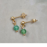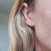 Oorringbedel Spring (lente), met de doorzichtige hanger in heldergroen. De natuurlijke aventurijn edelstenen zijn glad en rond, de kleur kan een beetje verschillen. De steen wordt beschreven op het certificaat, waar ook je naam op staat.