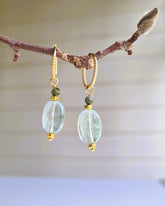• Oorbellen La Foret, heldere groene fluoriet en drakenbloedsteen