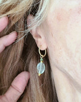 Oorbellen La Foret (het bos), met een hele heldere groene natuursteen fluoriet, voor helderheid en innerlijke rust. Een klein donkergroen drakenbloedsteen natuursteentje maakt je oorbellen echt bijzonder. Het sieraad wordt verpakt in een bewaaretui, en ingepakt als een cadeautje.