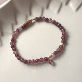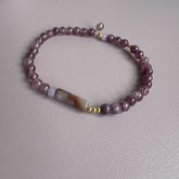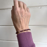 Jacky Moments Decisions verwijst naar de betekenis: besluiten nemen, daadkracht, de symboliek van lila lepidoliet. Kleine heldere edelsteentjes van 4mm, mooi glanzend doorzichtig. Een staafje India agaat met een beetje groen en bruin, en een paar lila jade kraaltjes maakt het armbandje nog levendiger.