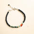 Zwarte en groen gemeleerde edesteentjes, met een beetje oranje en lichtblauw, een leuk armbandje met een waardevolle betekenis: voor innerlijke kracht en kalmte. Het slotje en Kip Design bedeltje zijn gemaakt van sterling zilver, dat maakt de armband duurzaam. Het armbandje wordt verpakt in een kleine bewaaretui, dat je makkelijk mee kunt nemen, en je armband beschermt.