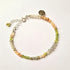 • Het enkelbandje Zehra met labradoriet, zonnesteen en peridoot steentjes, in lichtgrijs, zalmroze en lichtgroen