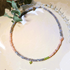 • Het delicate kettinkje Zehra met labradoriet, zonnesteen en peridoot steentjes, in lichtgrijs, zalmroze en lichtgroen