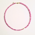 Roze toermalijn, en fonkelend facet geslepen, de ketting Yourself is schitterend! Kleine toermalijn edelsteentjes met een enkel pareltje en een paar (goudverguld) zilveren kraaltjes. De edelsteentjes zijn half doorschijnend roze. Het kettinkje wordt verpakt in een vilten bewaaretui, dat je makkelijk mee kunt nemen, en je ketting goed beschermt.