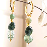 - Oorbellen Green Soul, met glanzende edelstenen mos agaat in wit-groen