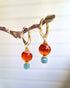 Oorbellen Orange & Bleu, carneool, blauwe toermalijn