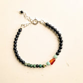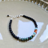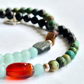 - De armband Green Shadow met onyx, afrikaans turquoise en amazoniet edelsteentjes