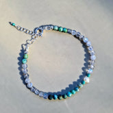 • Enkelbandje Green Mermaid, met labradoriet, chrysocolla, magnesiet edelsteentjes  in blauw-groene kleuren