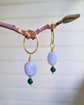 - Oorbellen Amelie, met lichtblauwe aqua chalcedoon en groene jade