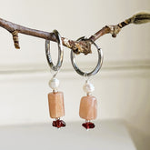 Oorbellen Soft Whisper, zonnesteen, granaat, parel