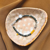 - De armband Little Star met zoisiet, agaat en hematiet kwarts edelsteentjes in donkergroen en geel
