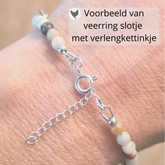 Magneetslotje: Kies je voor een massief zilveren slotje, dan krijg je standaard een magneetslotje met veiligheidskettinkje, dat je makkelijk af en om doet. Kies je voor maat Small, Medium of Large, dan krijg je een veerringslotje met verlengkettinkje van 3 cm.