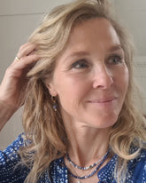 - Het delicate kettinkje Blue Wisdom met edelsteentjes saffier, lapis lazuli, parel in de kleuren blauw en wit