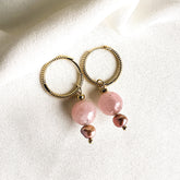- De oorbellen Pink Pearls, met rozekwarts, roze zoetwater parels