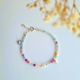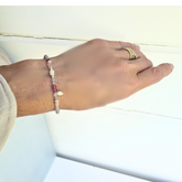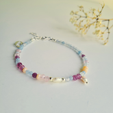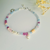 - De armband Shades of Heaven, aquamarijn, toermalijn en pareltjes