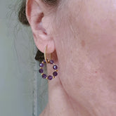 Oorbellen Friendship met paarse amethist, glanzend facet geslepen edelsteentjes van 4mm. Elk steentje is gescheiden door een (goudverguld) zilveren kraaltje. Stijlvol en verfijnd. Elke oorhanger is net anders, met lichte en donkerpaarse amethist. De oorbellen worden verpakt in een bewaaretui, dat je makkelijk mee kunt nemen, en je oorbellen goed beschermt.