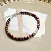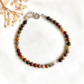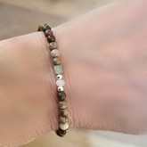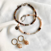 - Het armbandje Sandy Rocks met jaspis, rozekwarts, en labradoriet edelsteentjes