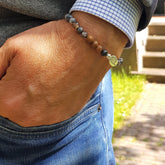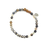 - De armband Grey Spider met spinnenweb agaat en jaspis edelstenen in grijze, bruine en zwart-witte tinten
