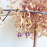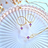 Fijne oorbel February, met de geboortesteen van de maand februari: een helder amethist edelsteentje. De steen is doorschijnend paars, en glanst fijn omdat de steen facet is geslepen. Je ontvangt een certificaat met de betekenis erbij. Ook krijg je een bewaaretui om je oorbellen te beschermen.