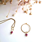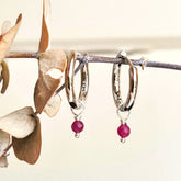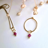 Fijne oorbel July, met de geboortesteen van de maand juli: een robijn edelsteentje. De steen is roze-rood, en glanst zacht omdat de steen facet is geslepen. Je ontvangt een certificaat met de betekenis erbij. Ook krijg je een bewaaretui om je oorbellen te beschermen.