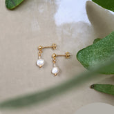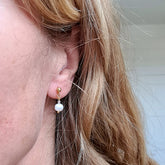 Oorbellen Lucky Pearl met een wit zoetwater pareltje en een klein glad lichtgrijs labradoriet steentje. Alle oorhaakjes zijn van (verguld) sterling zilver (925), dus duurzaam. Het labradoriet steentje is klein en teer, de parel ietsje groter, dus ook heel leuk als je meerdere gaatjes in je oren hebt. Een lief cadeau om weg te geven, aan jezelf of aan een vriendin, zus of collega. De leuke oorbellen worden verpakt in een kleine bewaaretui, dat je makkelijk mee kunt nemen, en je sieraad beschermt.