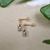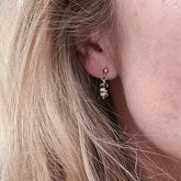 Kies je eigen oorhaakje op de 3e foto. Bij de haakjes krijg je siliconen achterkantjes, bij oorknopjes krijg je zilver-vergulde achterkantjes. De oorringen zijn massief zilver (.925) met goud verguld, dus duurzaam.