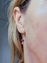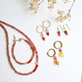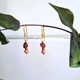- Oorbellen Sweet Dreams, met donkerroze-rood aardbeienkwarts en oudroze rhodoniet