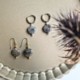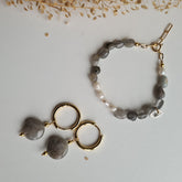 • Oorbellen & armbandje Hidden Intuition, met zoetwater parels en labradoriet edelsteentjes