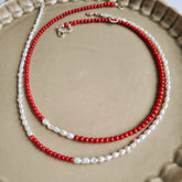 - De set kettingen Charming, met koraal en zoetwater pareltjes