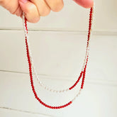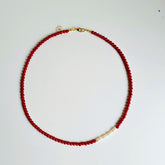 Ook los verkrijgbaar: Ketting Lucky You: kleine koraal en witte parel edelsteentjes. Ketting Heartbeat: heel veel koraal beads, en een paar witte zoetwater pareltjes.