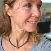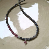 - Het kettinkje Purple Life met lepidoliet en labradoriet edelsteentjes in roze/lila/paars en grijs