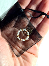 Witte bedel/hanger Harmony toont een cirkel van helderwitte agaat steentjes afgewisseld met goudverguld-zilveren of zilveren kraaltjes. Heel fijntjes kun je ze aan elk kettinkje, of oorringetje hangen. De agaat steentjes zijn facet geslepen, en helder wit en ze glanzen prachtig! De bedel-hanger wordt verpakt in een kleine bewaaretui, dat je makkelijk mee kunt nemen.
