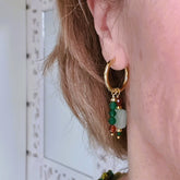 - De oorbellen Green Dance, met groene aventurijn, groene jade en oranje-bruine granaat