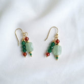Oorbellen Green Dance, groene aventurijn, jade, granaat