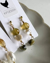 Oorbellen Little Olives, groene agaat, tijgeroog, parel