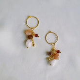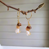 Oorbellen Smiling, bruine toermalijn, maansteen, zonnesteen, granaat