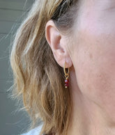 Oorbellen Spirit of Power, mooie oorhaakjes met fijne hangers in donkerroze en donkerrode tinten, en met twee granaat steentjes, een edelsteen die door de eeuwen heen zo geliefd is! Niet alleen vanwege de geweldige kleur, maar ook voor haar betekenis: wilskracht, passie en moed!