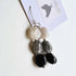 1 bedel Black and White, met opvallende hanger, 3,4 cm, in 3 verschillende kristallen, zwarte onyx, grijze labradoriet en witte maansteen, en glanzen aan je oren! Geen steen is ooit hetzelfde, dus elk paar is weer net anders. De kristallen zijn natuurlijk gevormd, dat geeft ze echt iets speciaals. Met een certificaat waar de symboliek van de kristal op staat beschreven.