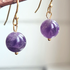 1 bedel Strong Violet heeft een doorzichtige paarse amethist edelsteen die veel licht vangt en een zachte glans heeft. Elke oorhanger is net anders, met meer of minder witte vlammetjes erin.