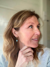 Oorbellen Early Morning, mooie oorhaakjes met fijne hangers in lichtblauwe tinten, met de ronde facet geslepen edelsteen amazoniet. In lichte schakeringen blauw, en geen steen is ooit hetzelfde. Dat maakt de oorbellen heel levendig. De bovenste kleline edelsteentjes apatiet zijn helder groenblauw, doorzichtig en met een sprankelend detail. Het onderste kleine edelsteentje is heel lichtblauw aquamarijn. Elk paar is weer net ietsje anders, dat maakt je oorbellen uniek. De oorbellen worden verpakt in een bewaaretui, dat je makkelijk mee kunt nemen.