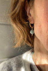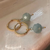 - De oorbel Early Morning, met edelstenen amazoniet en apatiet, in tere beige en lichtgroene tinten